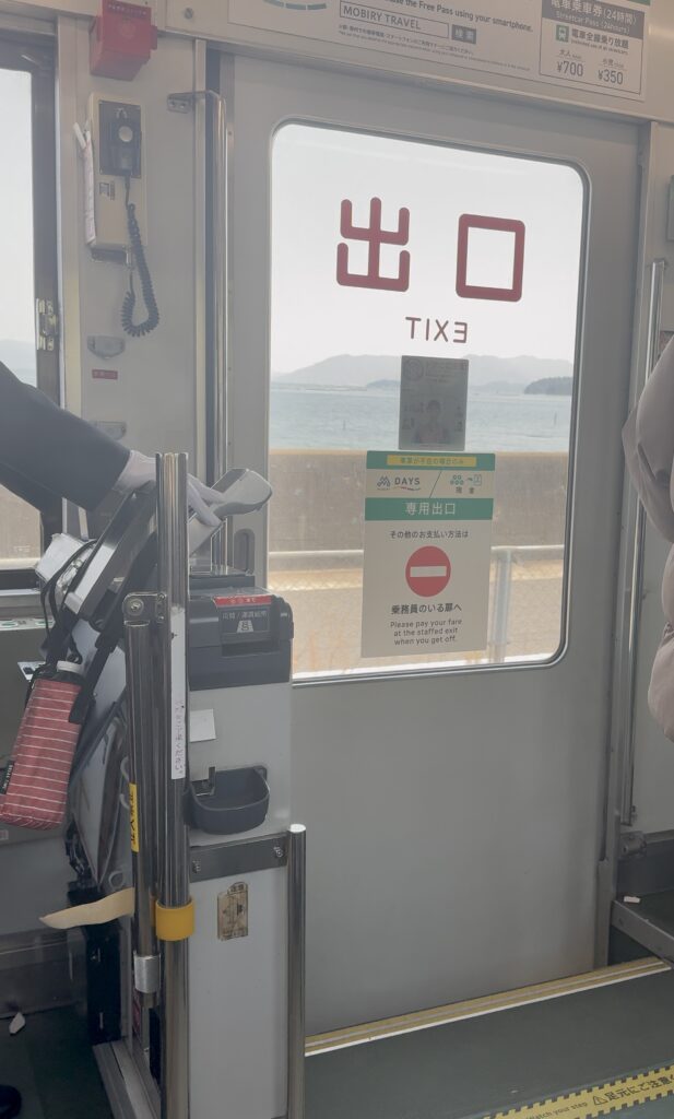 何駅乗っても定額ですが、1回乗り換えしたので、フェリー乗り場の「宮島口駅」まで合計460円でした。それでも安い!