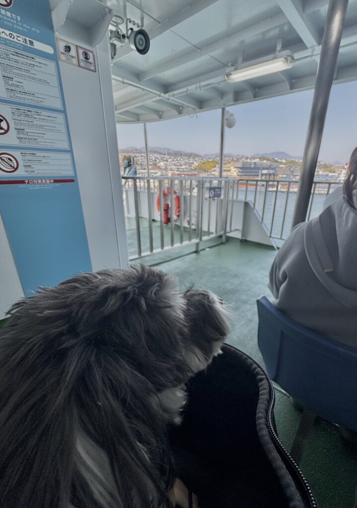 フェリーもわんこと一緒に乗車可能。だっこでOKです。
