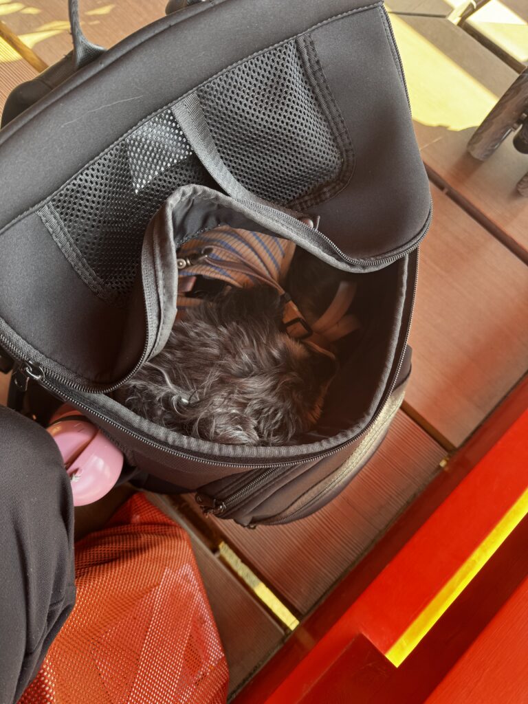 ららちには、ここでもリュックIN顔出しスタイルでいてもらいました。とってもお利口さんでした。